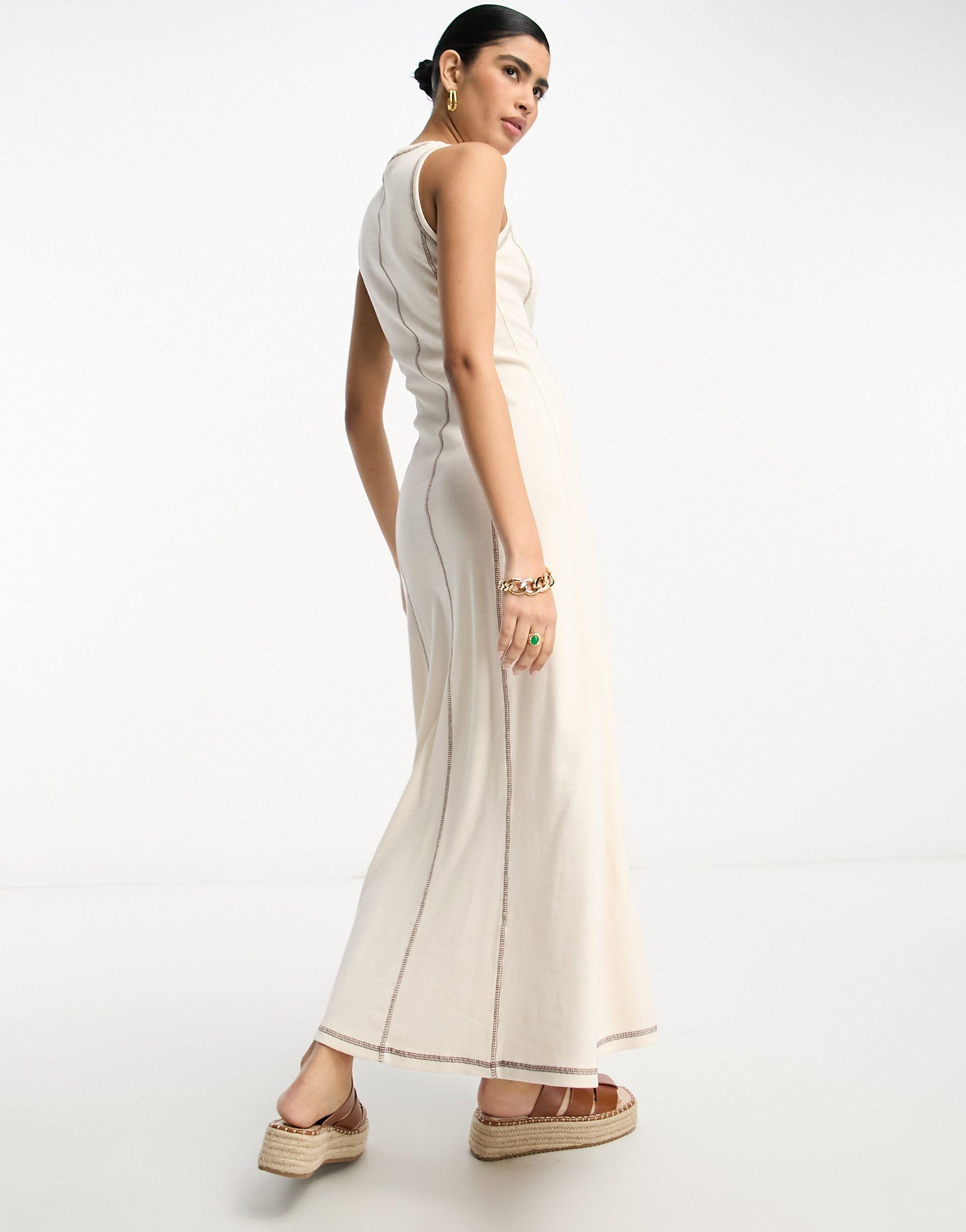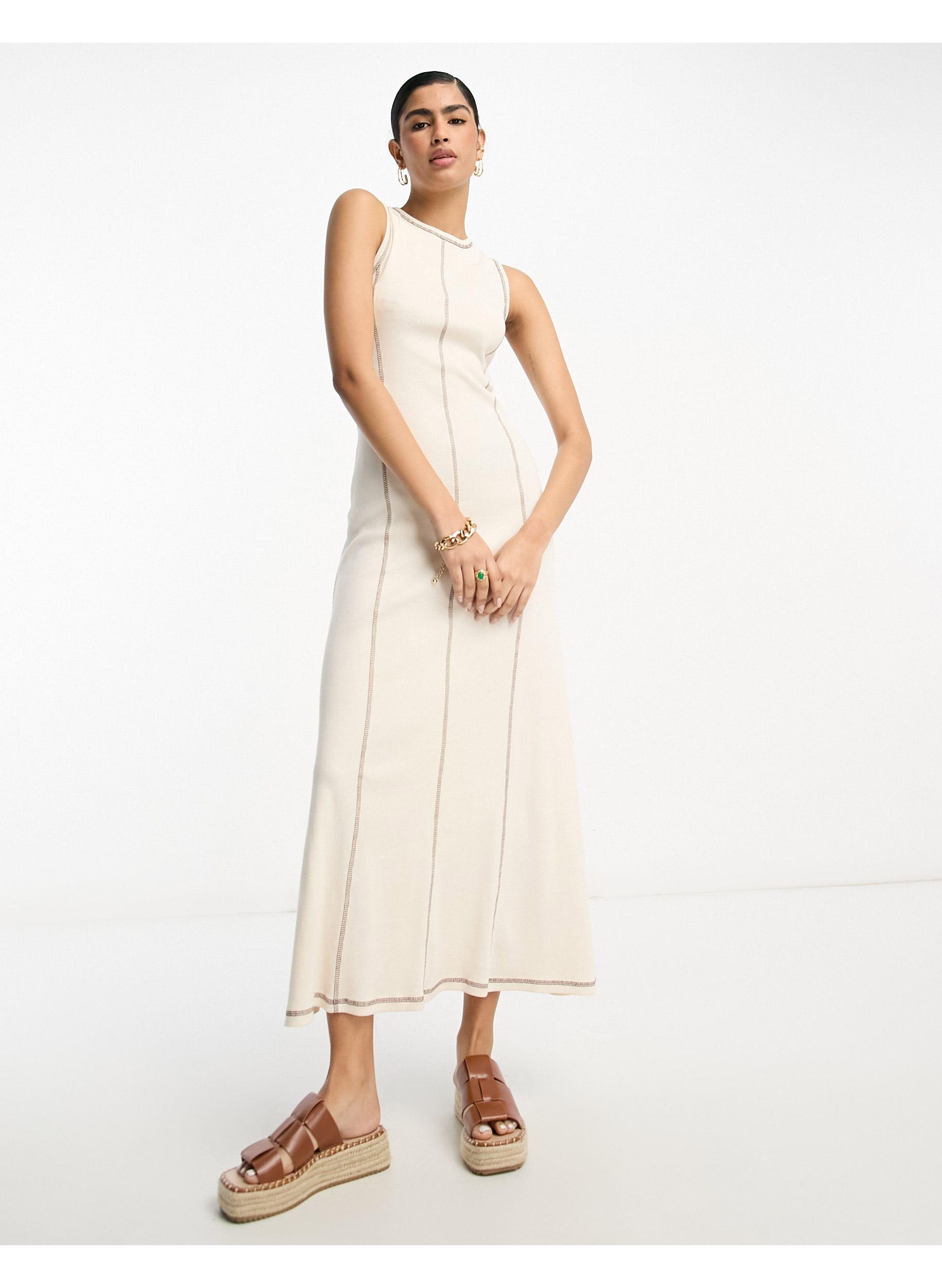 Asos Sleeveless Maxi Dress With Contrast Stitch In Natural Lyst Uk