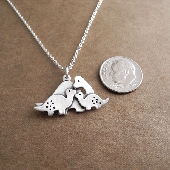 Mother And Two Baby Dinosaurs Necklace Mom And Two Kids Fine Etsy Uk